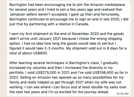 On July 7, 2021 I saw Barrington on the television, he stated that Jamaicans can now sell on Amazon.